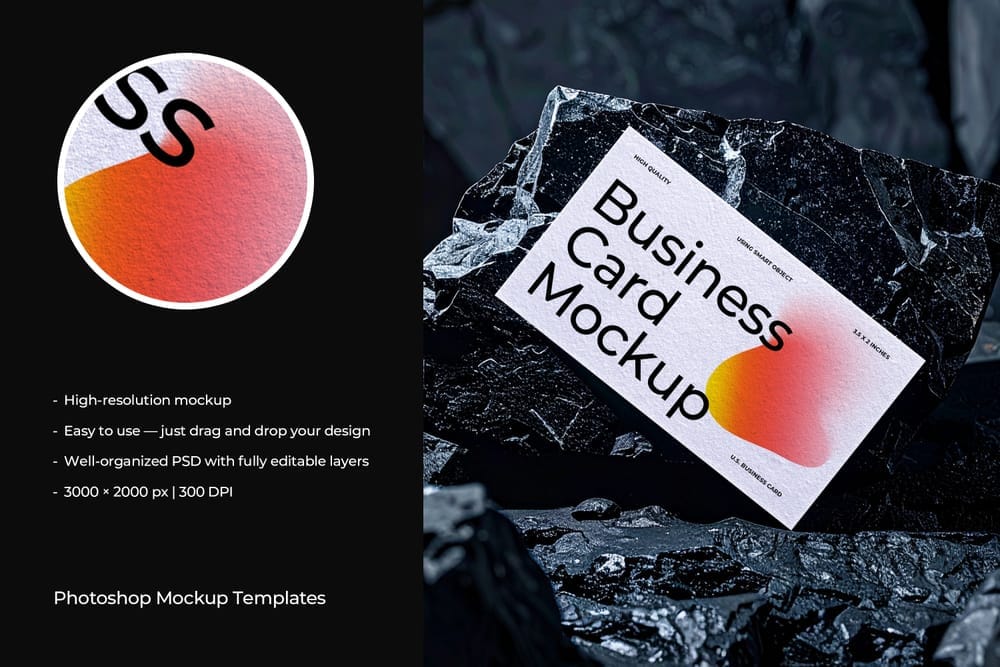 Business Card Mockup on Dark Stone
