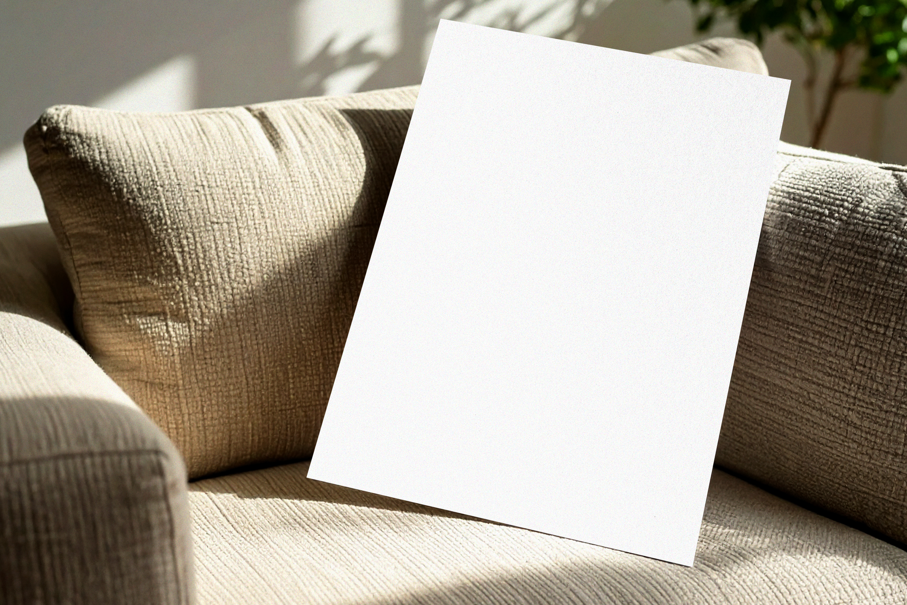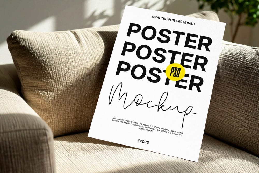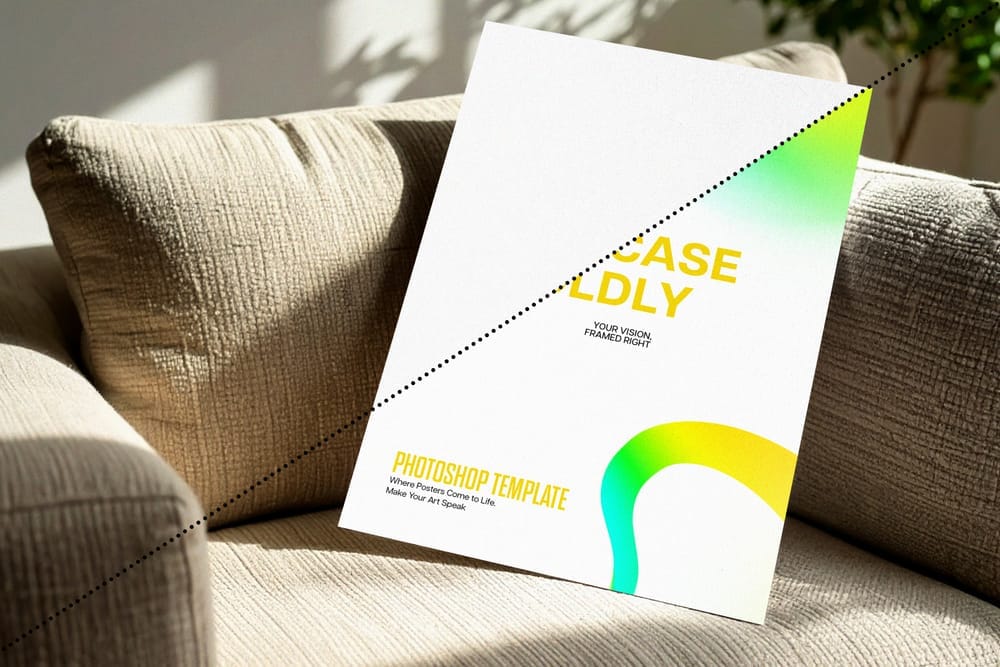 Poster Mockup in Sunlit Living Room with Sofa